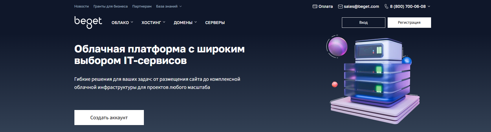 Beget started as a budget hosting provider and maintained this philosophy while expanding services to VPS. If you need a simple, understandable, and inexpensive server — this is your choice.